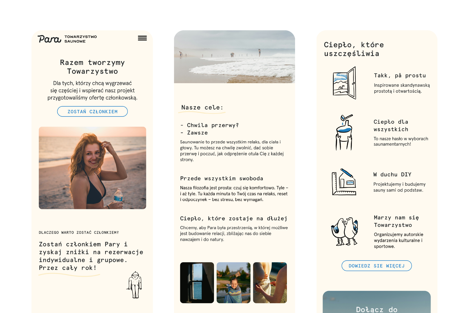 For Sauna Para, I developed a visual identity, illustration library, social media templates, and website design. The result is a bright, inviting brand with minimalistic illustrations that reflect the warmth and joy of sauna culture.